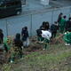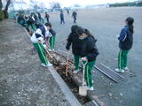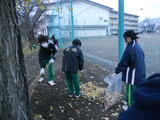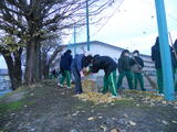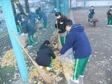 11月27日、放課後の時間を使って、1・2年生が校庭の落ち葉拾いボランティア活動に取り組みました。冷え込みの厳しい中でしたが、多くの生徒が参加し、校庭周辺の溝やフェンス沿いの落ち葉を丁寧に集めてくれました。