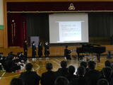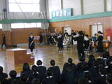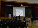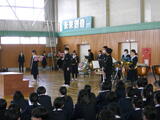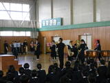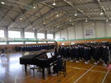 また、生徒会執行部から2学期の活動を振り返るまとめがありました。さらに、受験の時期を迎える3年生に向けて、1・2年生から温かいエールが送られました。吹奏楽部による演奏の披露もあり、集会に彩りを添えました。